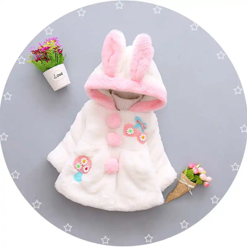 Good Offer of Brand fashion Newest Kid Baby Girls Plush Cartoon Rabbit Ear Hoodies Hooded Warm Coat Jacket Outwea
